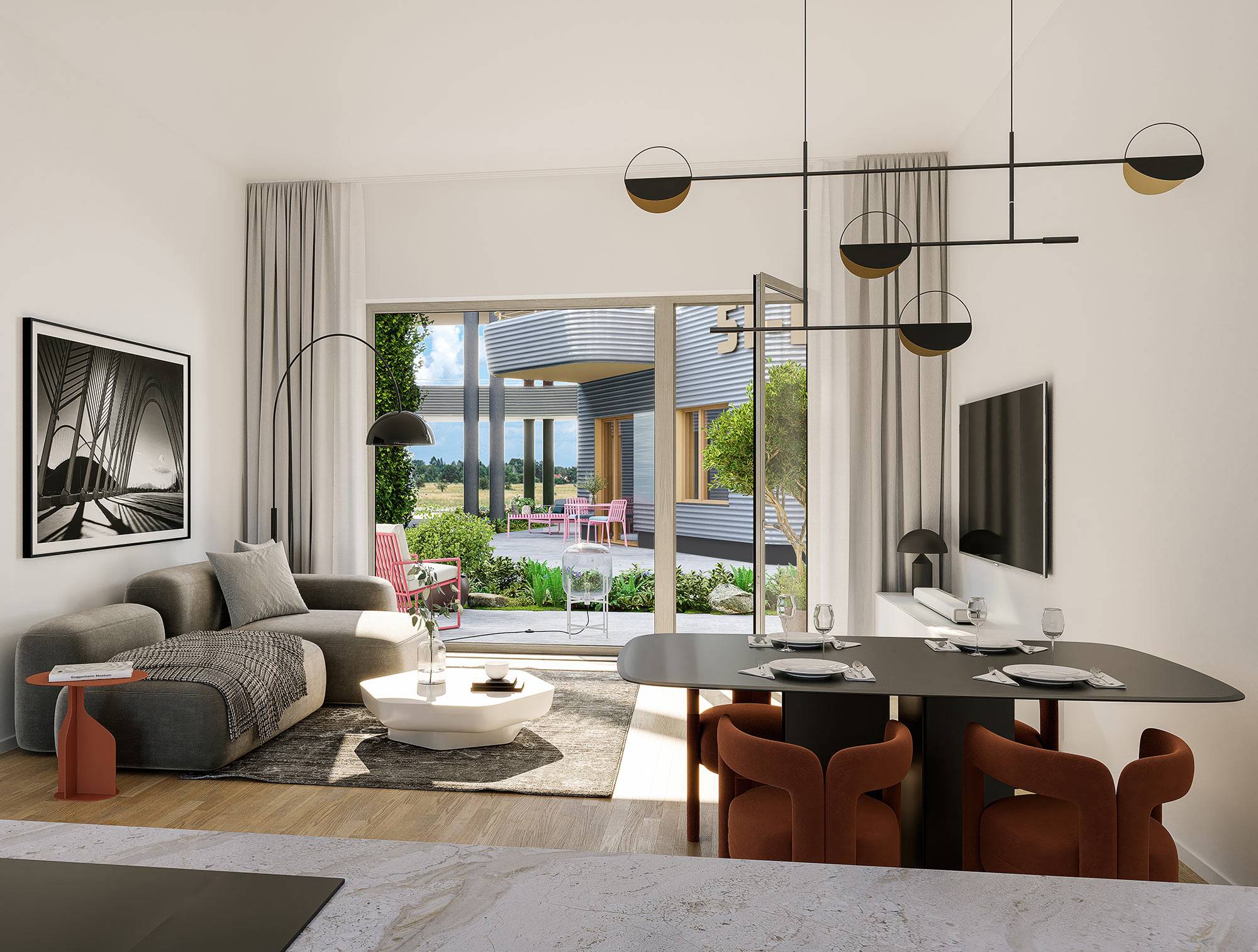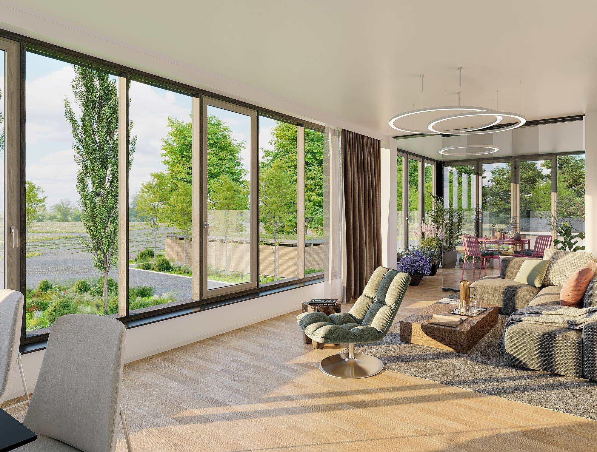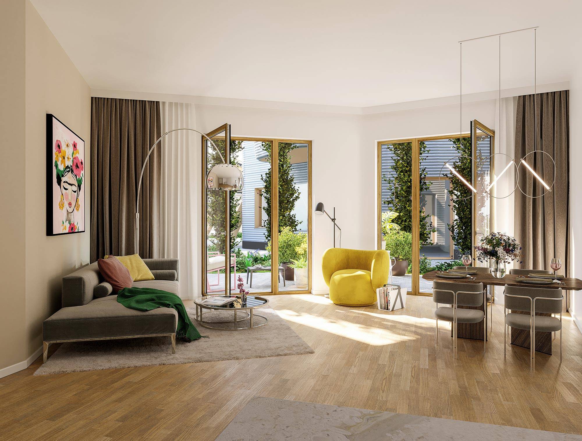 92 Wohnungen bieten Singles, Paaren und Familien ein neues Zuhause. Wer investiert, profitiert: mit § 7i EStG, KfW-Förderung und nachhaltiger Energieversorgung durch Geothermie, Photovoltaik und Blockheizkraftwerk.
